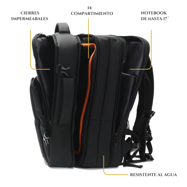 Esta mochila cuenta con un compartimento principal amplio, ideal para ropa, zapatillas o artículos voluminosos, además de bolsillos internos estratégicos que facilitan la organización de tus pertenencias.