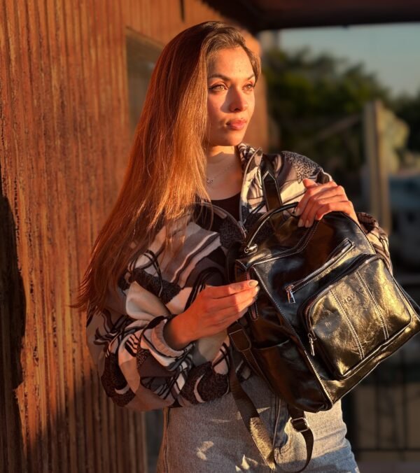 La mochila Tokio negra de MOVAC está diseñada para mujeres que valoran el equilibrio entre elegancia, comodidad y funcionalidad. Su estilo moderno y versátil la convierte en el accesorio perfecto para acompañarte en tu rutina diaria, ya sea en la oficina, la universidad o tus viajes de fin de semana.