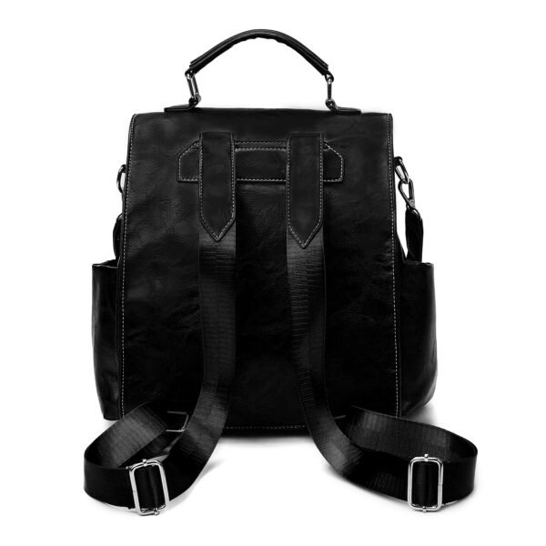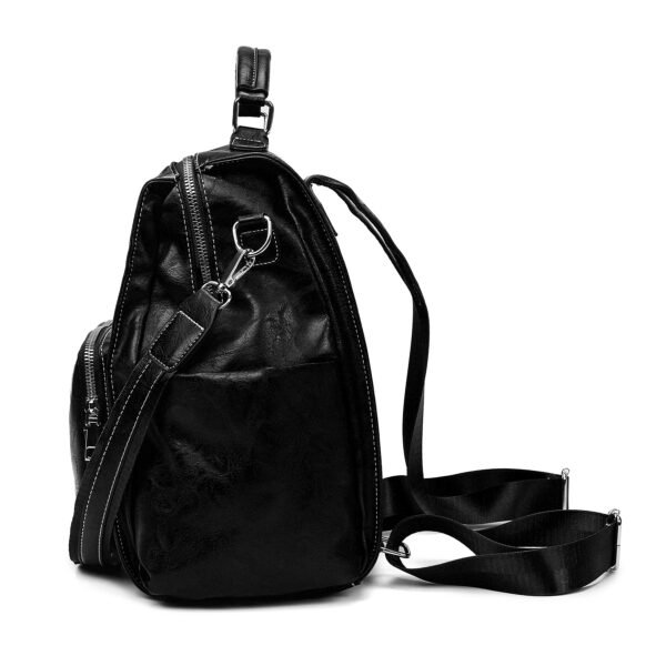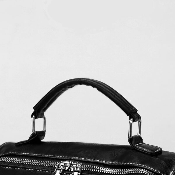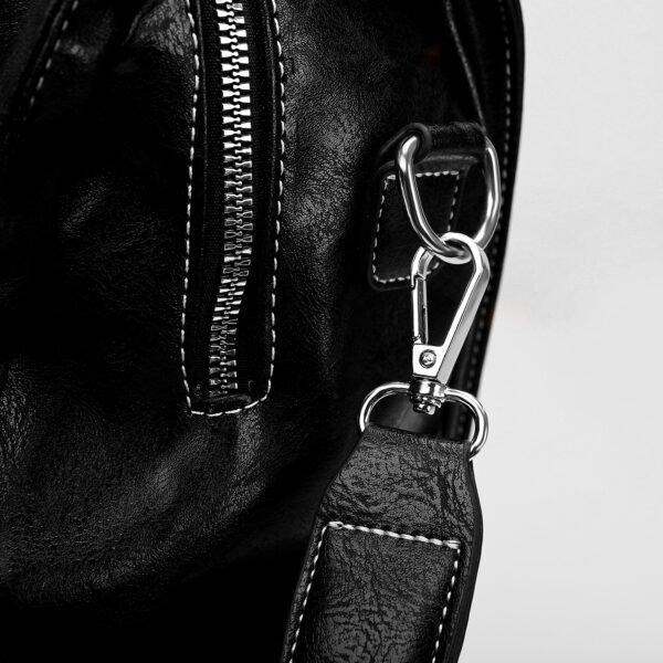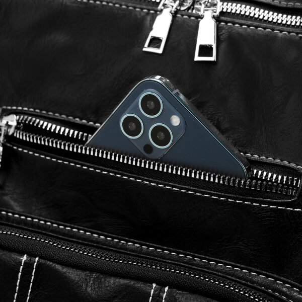 Fabricada en cuero PU de alta calidad, esta mochila Tokio negra ofrece una textura suave, resistente y fácil de limpiar. Su tono negro clásico combina con cualquier look, desde los más formales hasta los más casuales, adaptándose a cada ocasión con un toque de sofisticación.
