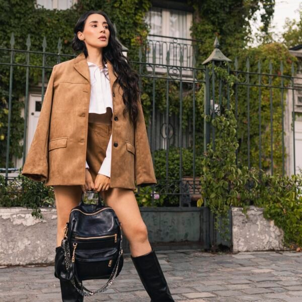Las correas removibles te permiten cambiar el look o adaptarla según ocasión, mientras que su tamaño compacto pero bien distribuido (33 cm de alto, 31 cm de ancho, 14 cm de profundidad) la hace ideal tanto para el trabajo como para una escapada breve.